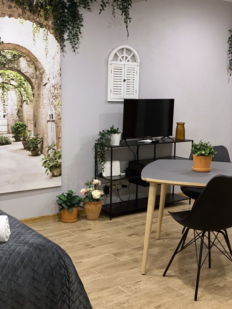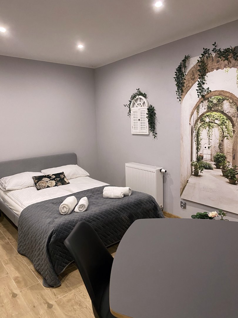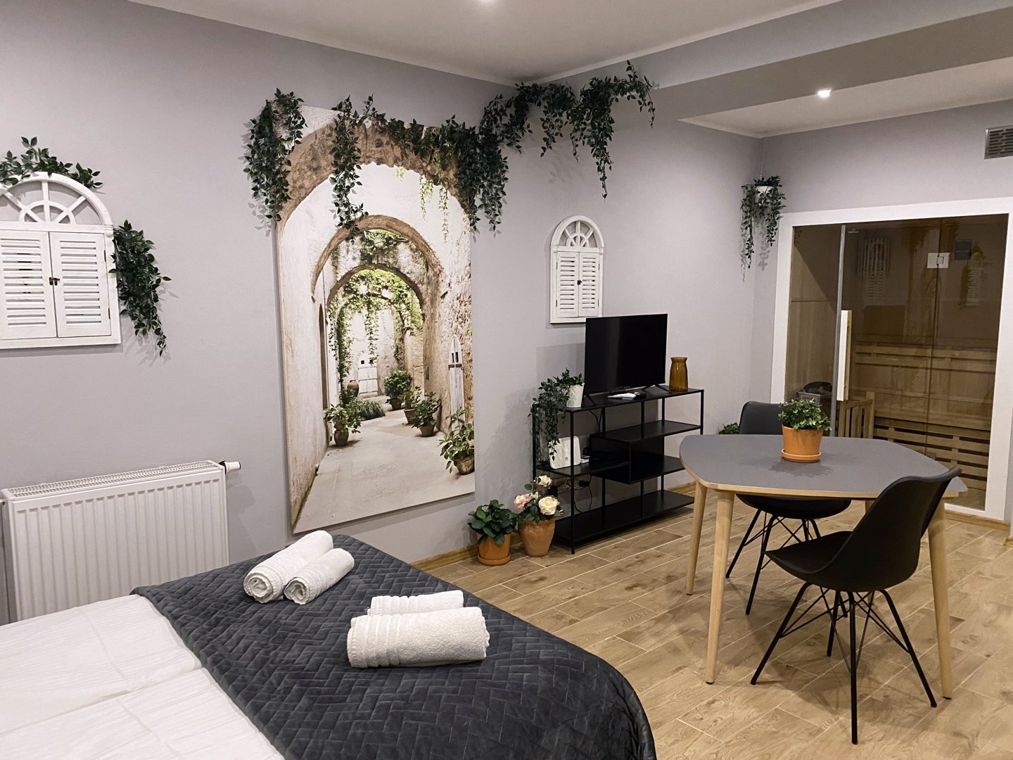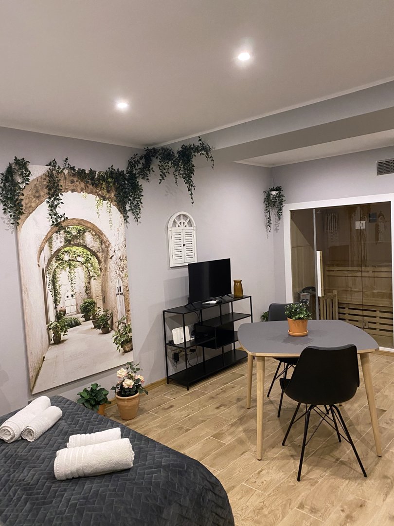 Miodowa Faktoria with a sauna is a compact studio apartment in the heart of Toruń's Old Town. The apartment accommodates 1-2 people and offers a private sauna, kitchenette, and air conditioning. It's a functional solution for guests planning short stays, sightseeing, or business trips. The location allows quick access to major attractions and the Toruń Miasto train station.Miodowa Faktoria with a sauna is a compact studio apartment in the heart of Toruń's Old Town. The apartment accommodates 1-2 people and offers a private sauna, kitchenette, and air conditioning. It's a functional solution for guests planning short stays, sightseeing, or business trips. The location allows quick access to major attractions and the Toruń Miasto train station.