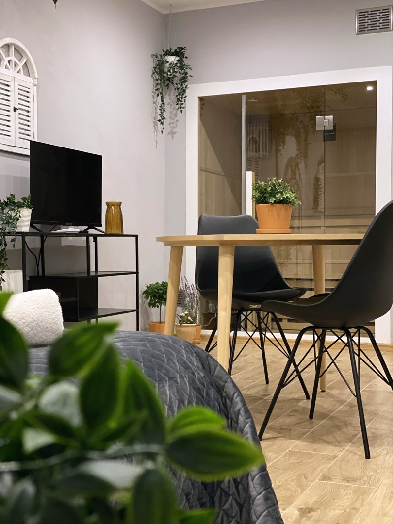 Type and standard• Studio apartment• Exclusive use of the entire property• Area: approx. 20 m²• Private sauna• Air conditioning• Free Wi-FiSpace and sleeping• Studio for max. 2 people• Living area with sleeping area• Storage space• Linen includedKitchen• Kitchenette• Refrigerator• Stovetop• Electric kettle• Kitchenware• Coffee maker• Tea and coffee making facilitiesTechnology• TV• Wi-FiBathroom and amenities• Private bathroom• Shower• Towels• Hairdryer• Iron• Cleaning products