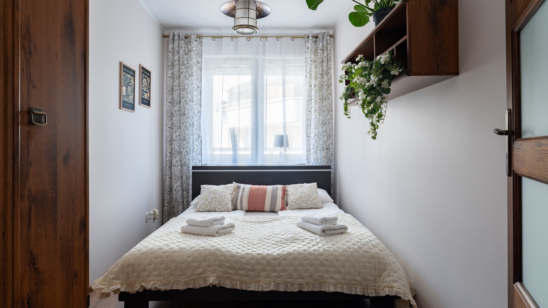 M&T Apartment is a functional, two-room apartment in Toruń on Podchorążych Street, designed for both tourist and business stays, within easy reach of the Old Town. The 47 m² apartment features separate rooms, a fully equipped kitchen, and a bathroom with a bathtub and shower, offering a comfortable standard for up to four people. Its location in a gated community with monitored parking makes it easy to access and leave your car, while the proximity of parks, cafes, and historical monuments enhances the location's usefulness for both short visits and longer stays. The standard includes practical furnishings and facilities that are user-friendly for guests who prefer self-check-in. Type and StandardM&T Apartment is a functional, two-room apartment in Toruń on Podchorążych Street, designed for both tourist and business stays, within easy reach of the Old Town. The 47 m² apartment features separate rooms, a fully equipped kitchen, and a bathroom with a bathtub and shower, offering a comfortable standard for up to four people. Its location in a gated community with monitored parking makes it easy to access and leave your car, while the proximity of parks, cafes, and historical monuments enhances the location's usefulness for both short visits and longer stays. The standard includes practical furnishings and facilities that are user-friendly for guests who prefer self-check-in. Type and Standard– Private apartment, full-service apartment– Area 47 m²– Modern, functional interiors– Gated community, CCTV