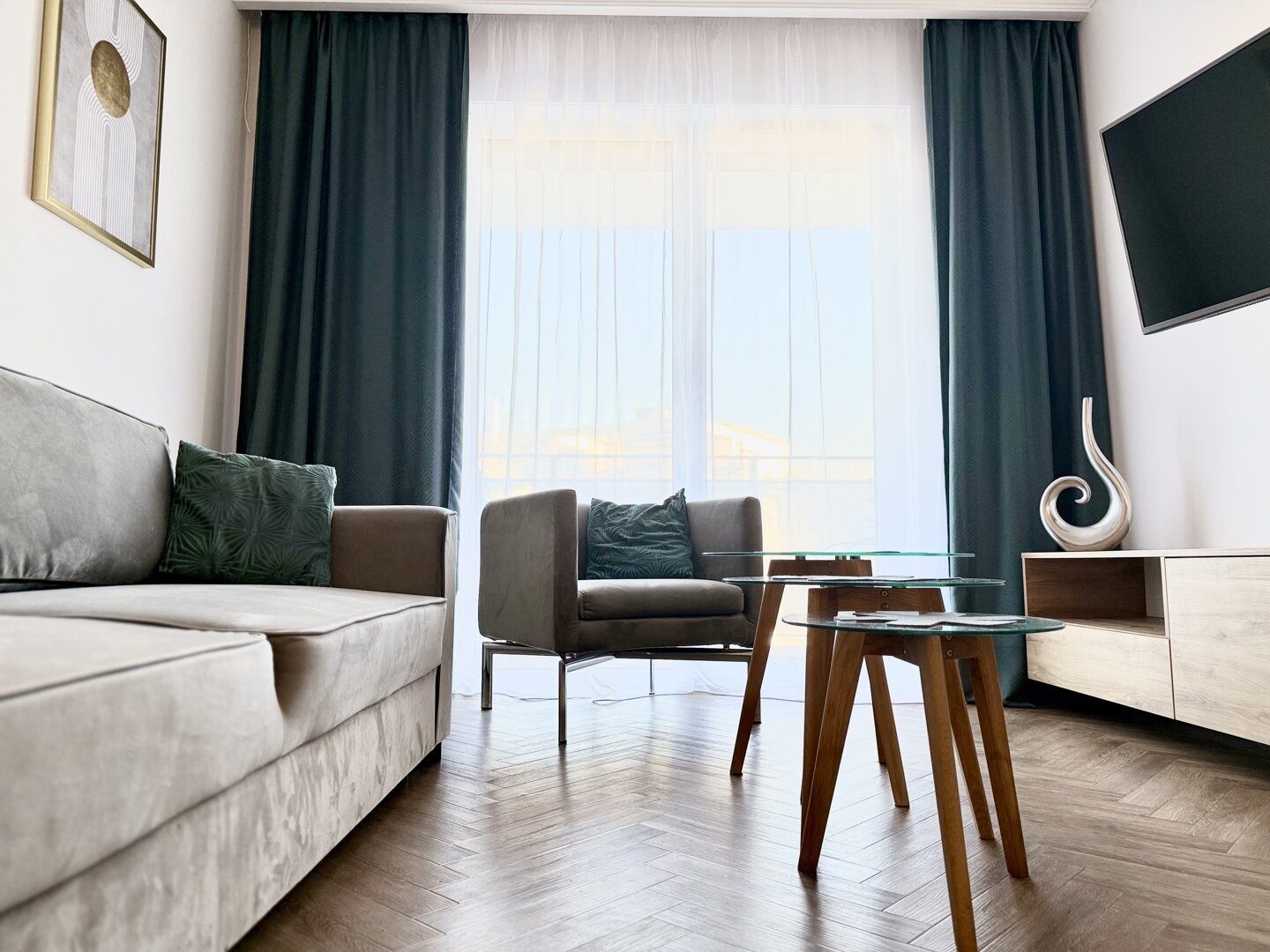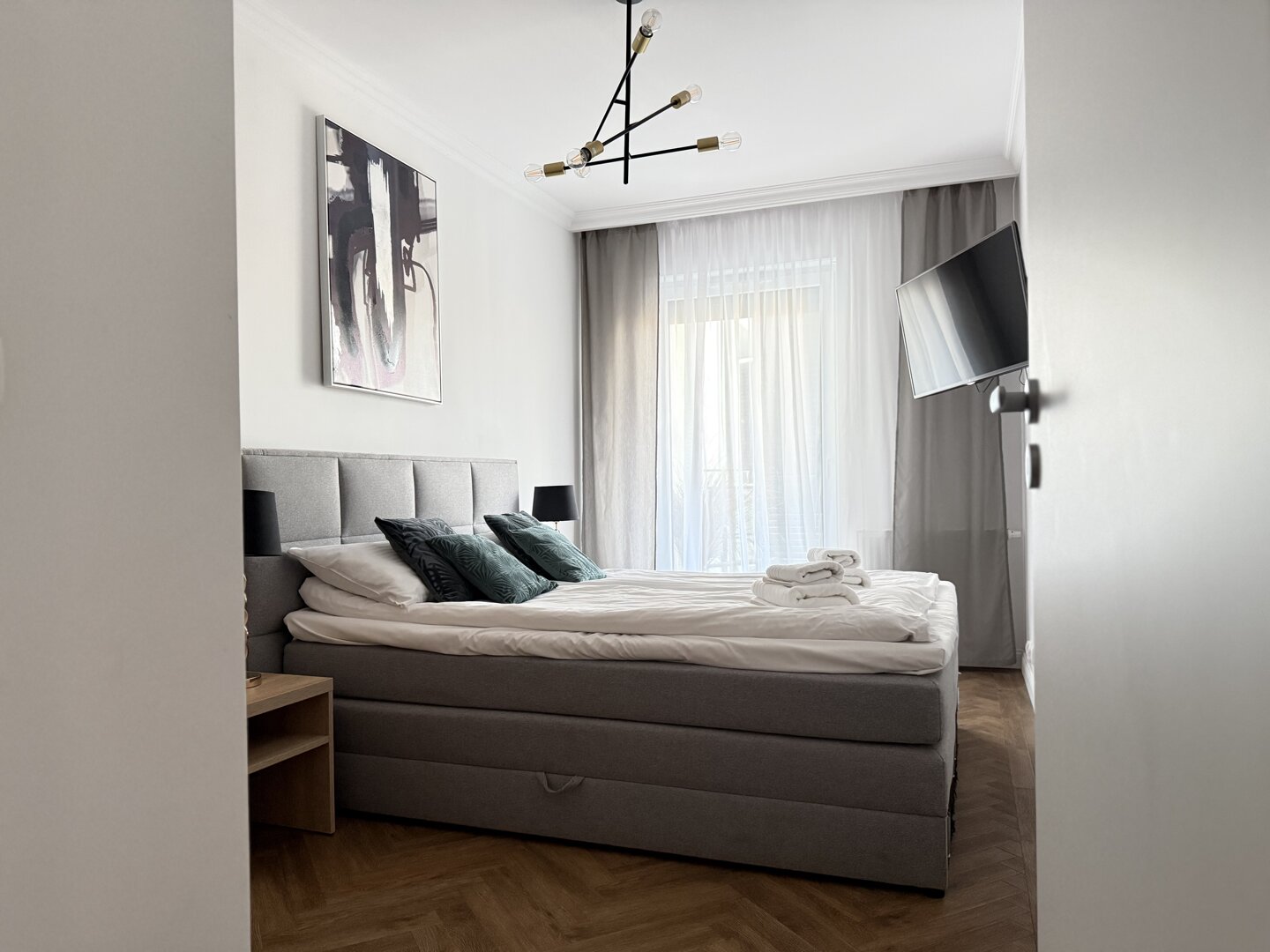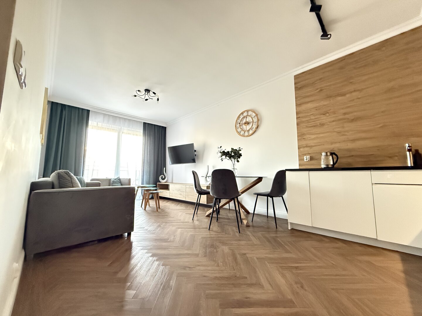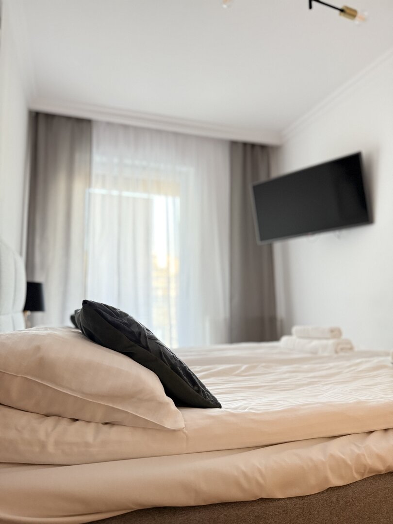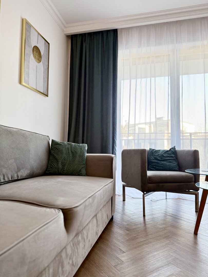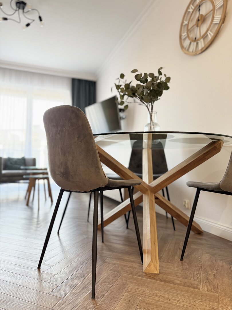 The Bawarczyków Apartment is a self-contained 49 m² apartment located in Toruń, offering accommodation for up to four people. It comprises a bedroom, a living area with a kitchenette, and a balcony overlooking the city, providing a functional space for work and relaxation. The apartment is fully equipped with all necessary appliances and amenities – a kitchen with full appliances, a bathroom with a shower, free Wi-Fi, and a private parking space. Its location close to Toruń's central attractions and good transport links make sightseeing and planning your stay easy, whether for tourism or business. The standard is consistent with the description and photos, providing bright, well-lit interiors and a comfortable stay. Type and Standard