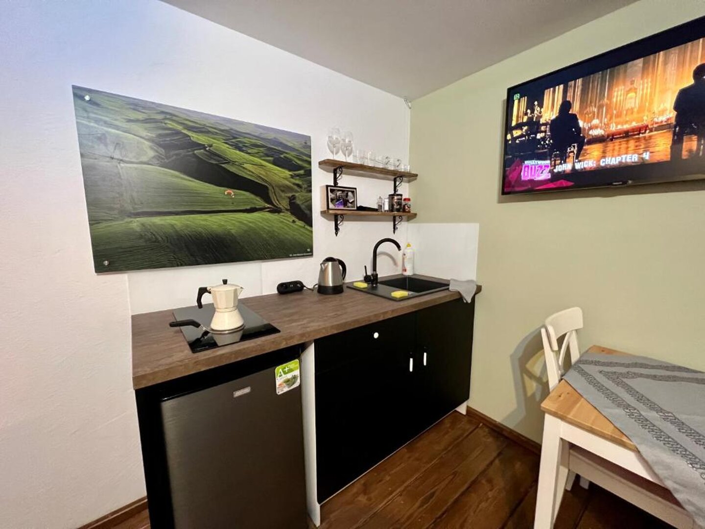 Kitchen- Fully equipped kitchen; Kitchenette; refrigerator; stovetop; kettle; coffee/tea set; dishes and kitchenware; dining area.Technology-Wireless Wi-Fi; flat-screen TV; streaming services available; bedside power sockets; reading light.Bathroom and Amenities-Private bathroom with shower; hairdryer; cleaning products; washing machine; bed linen and towels; iron; mosquito net; wardrobe and hangers; private entrance; roll-in shower.