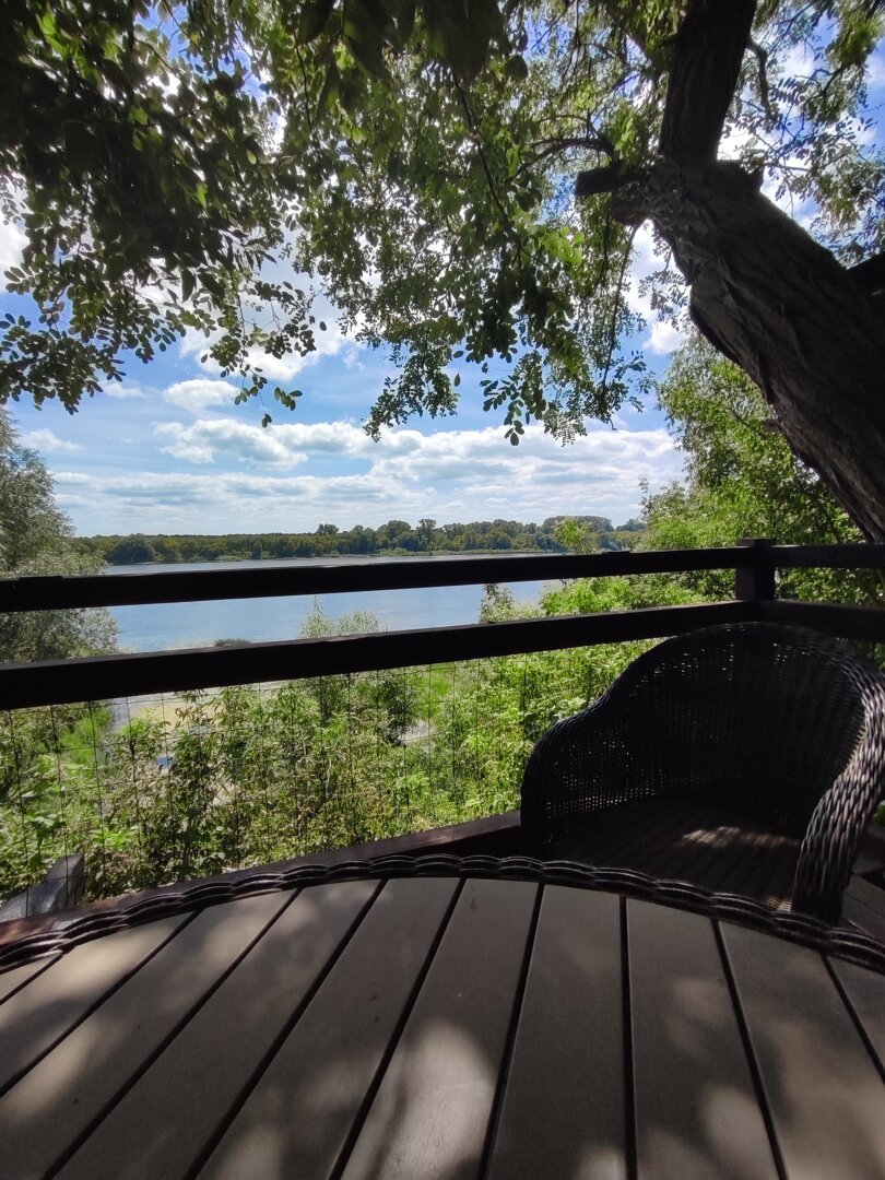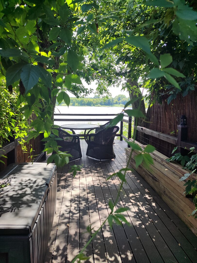 Space and Sleeping- Separate bedroom; 2 beds / sleeps 3; daybed; living area with TV; access to a terrace with a garden and river view.