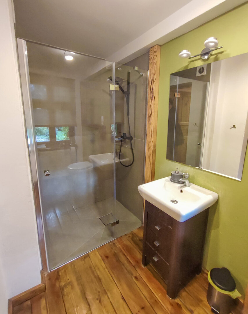 • Private bathroom with a roll-in shower