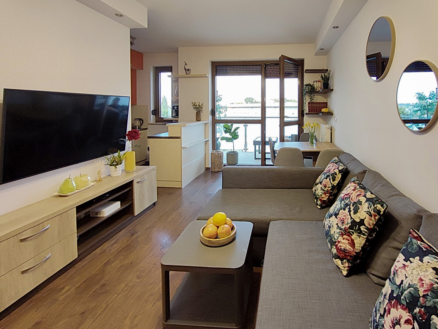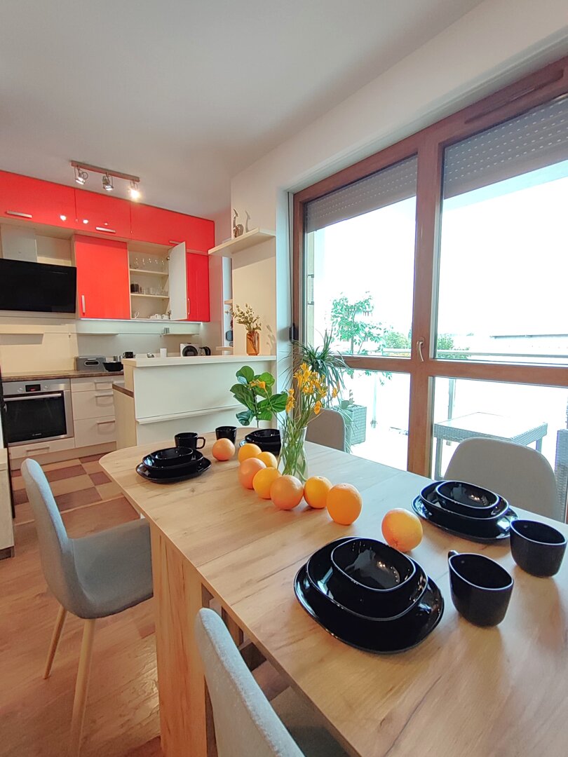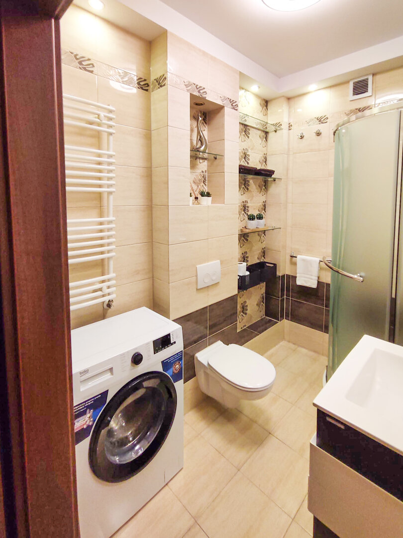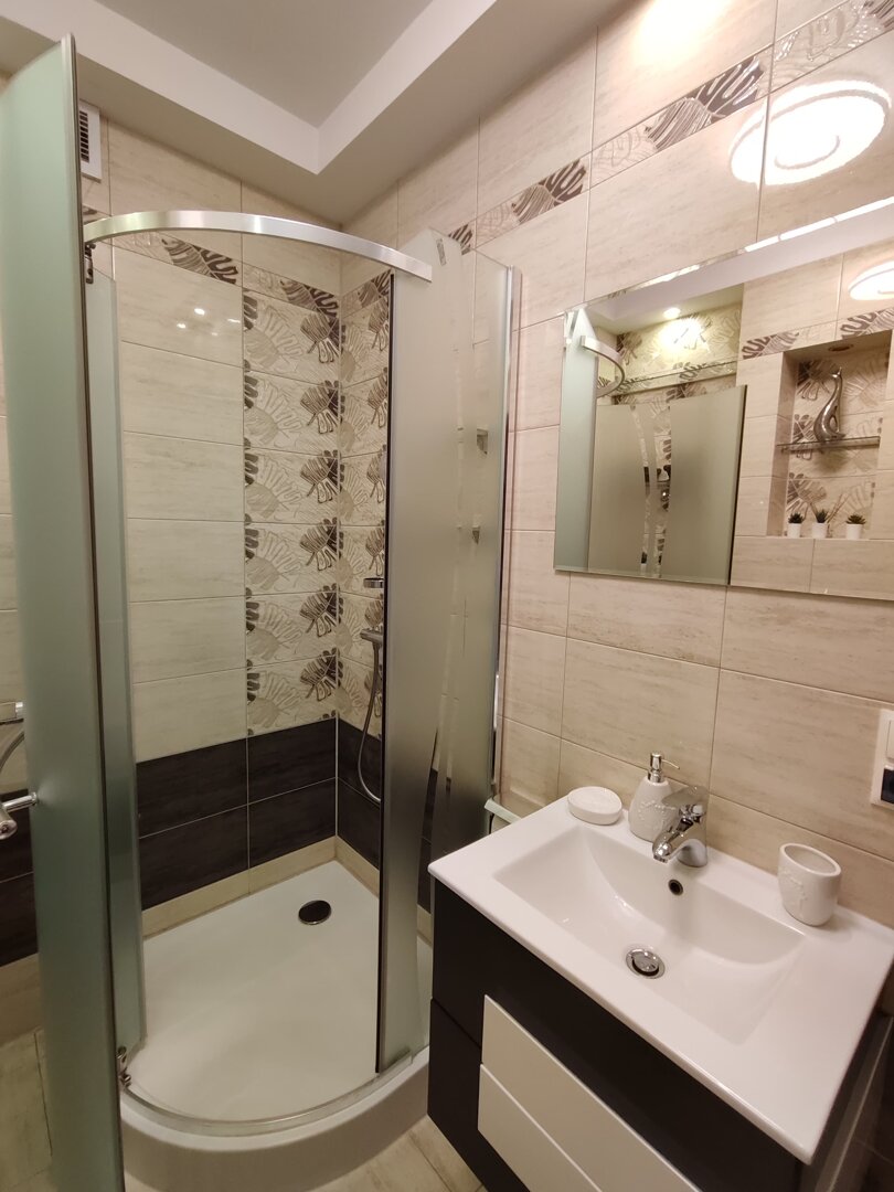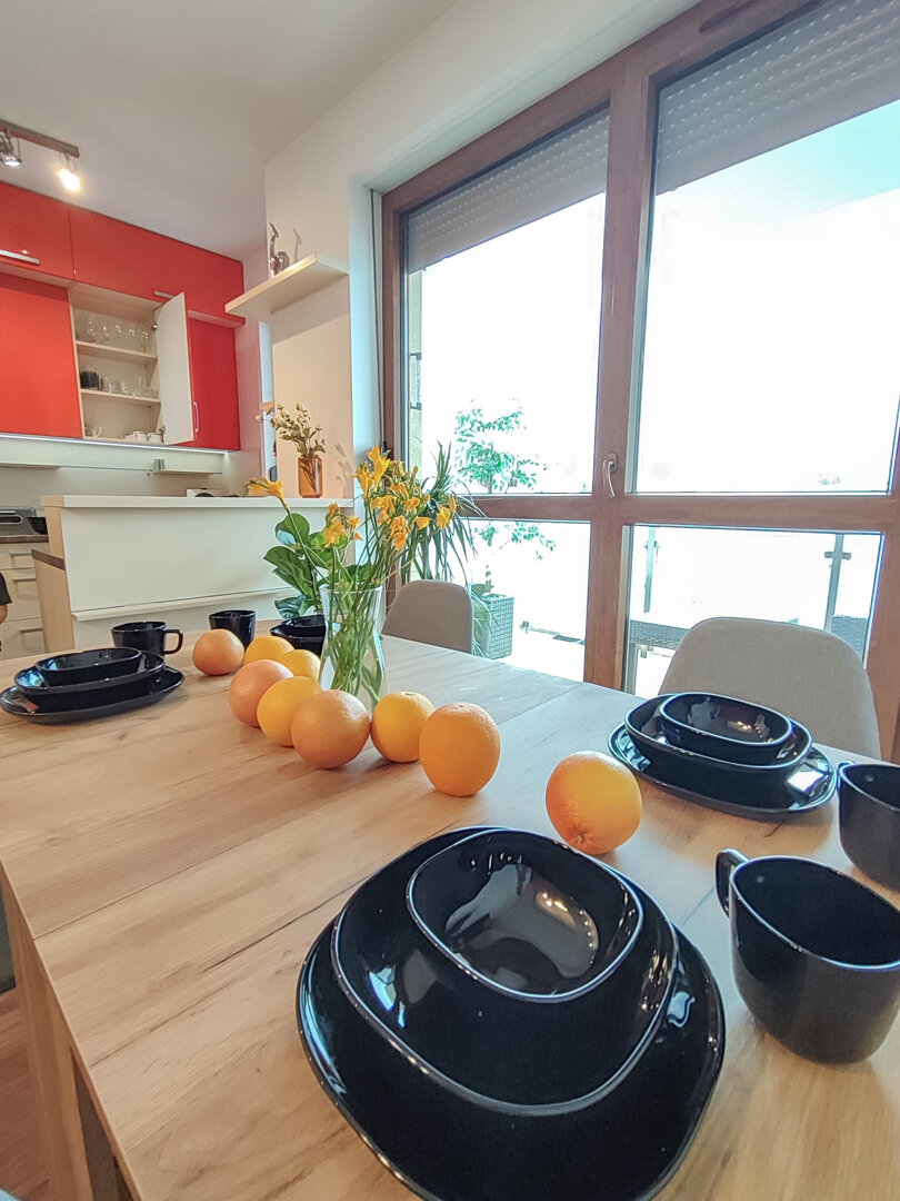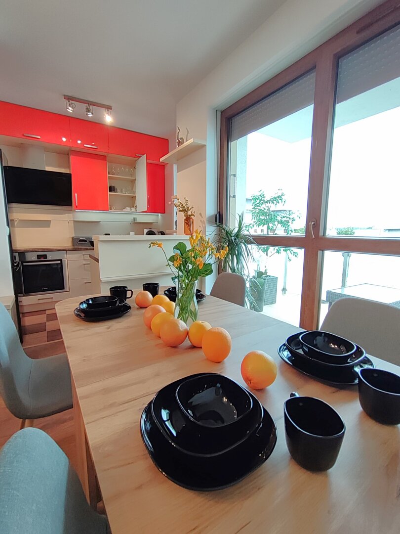 The Sweet Orange Apartment is a fully equipped, modern 31 m² apartment in Toruń, designed for maximum functionality and comfort for a couple or one or two people. Located in a quiet, gated community with private parking, it provides comfort and security for those traveling by car. The interior includes a separate sleeping area with a sofa bed, a fully equipped kitchenette, and a private bathroom with a shower. A balcony overlooking the courtyard provides space for outdoor relaxation. The property offers a standard suitable for long-term stays and short business or leisure visits. Type and Standard