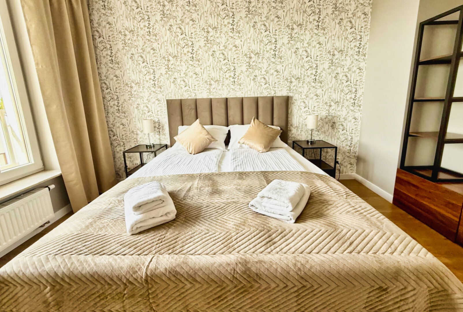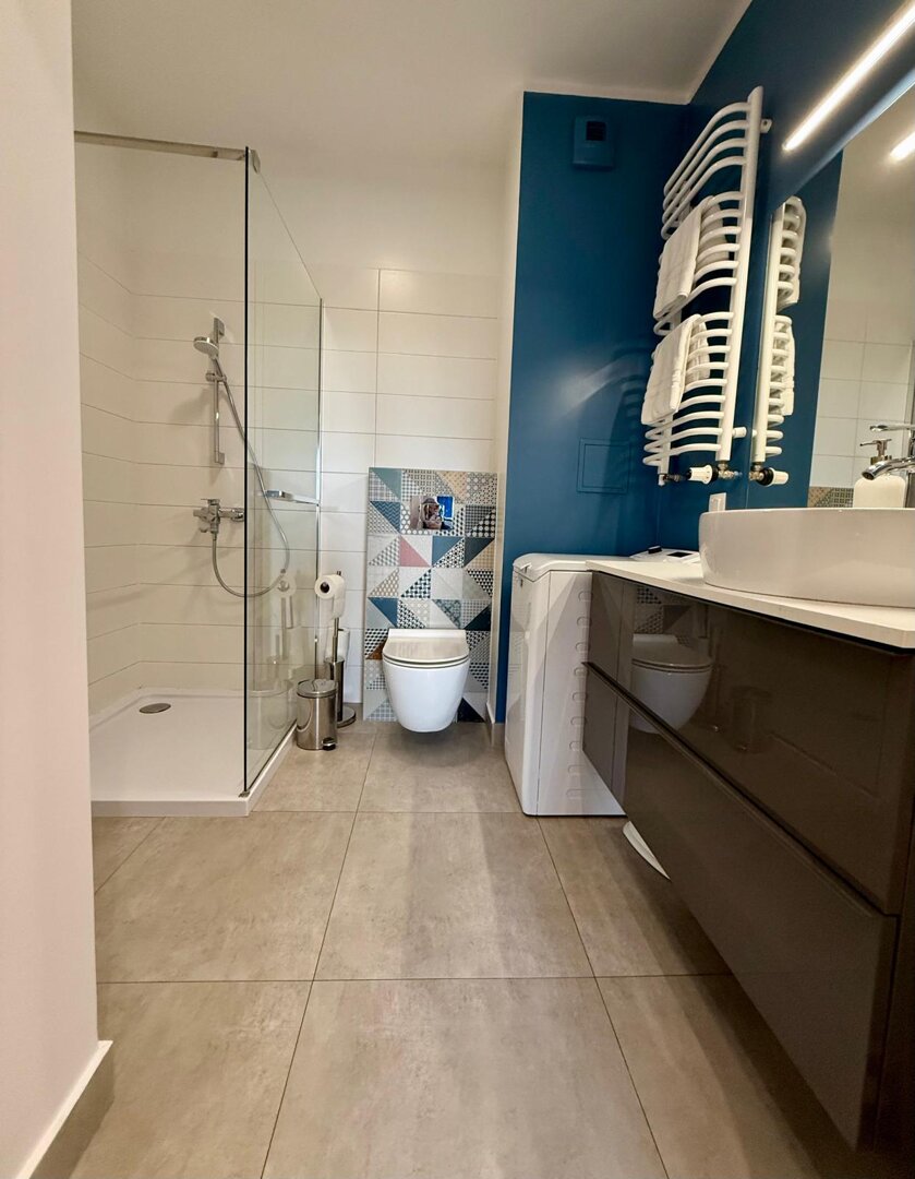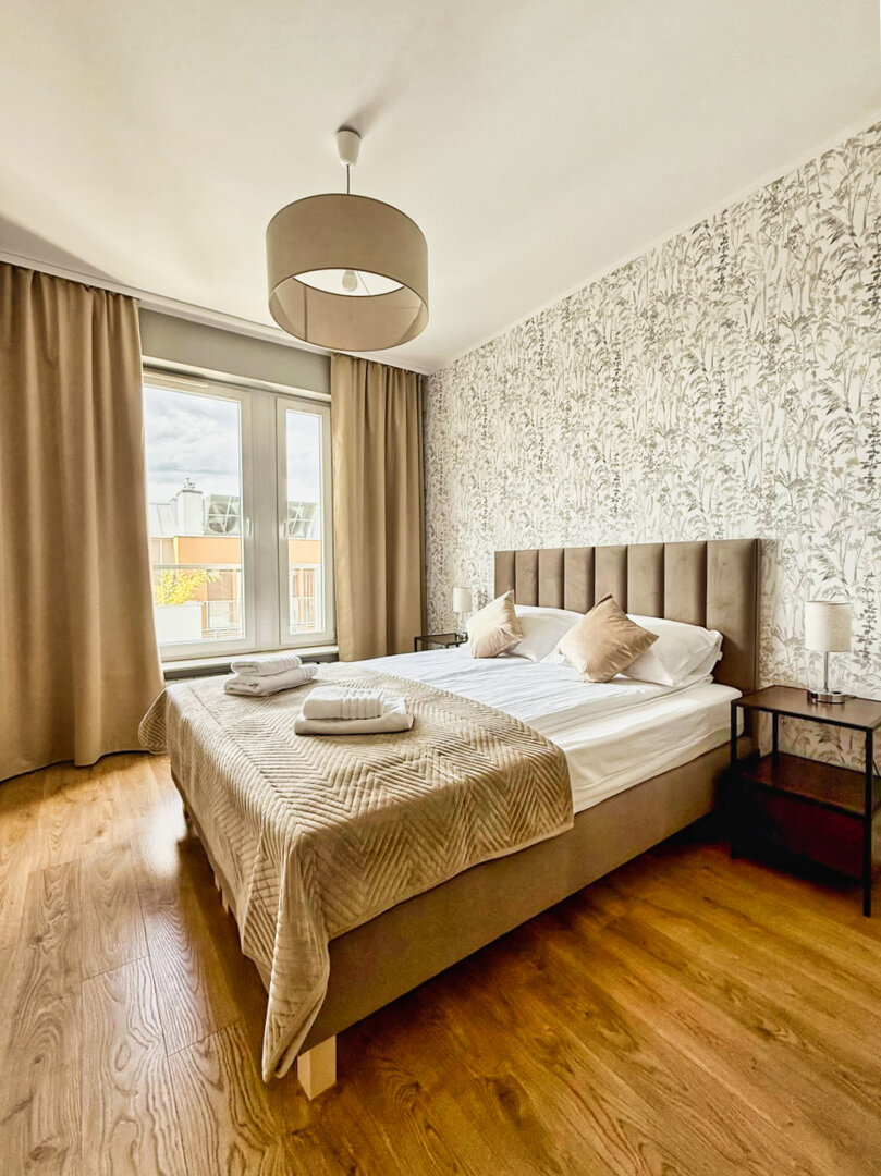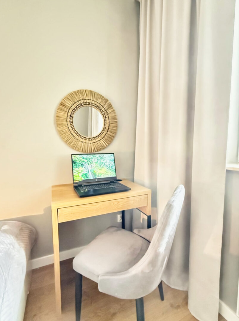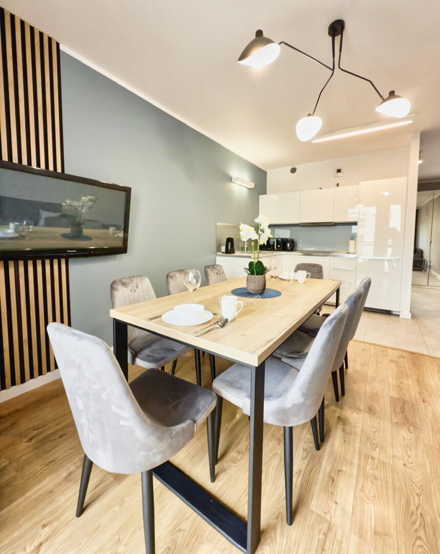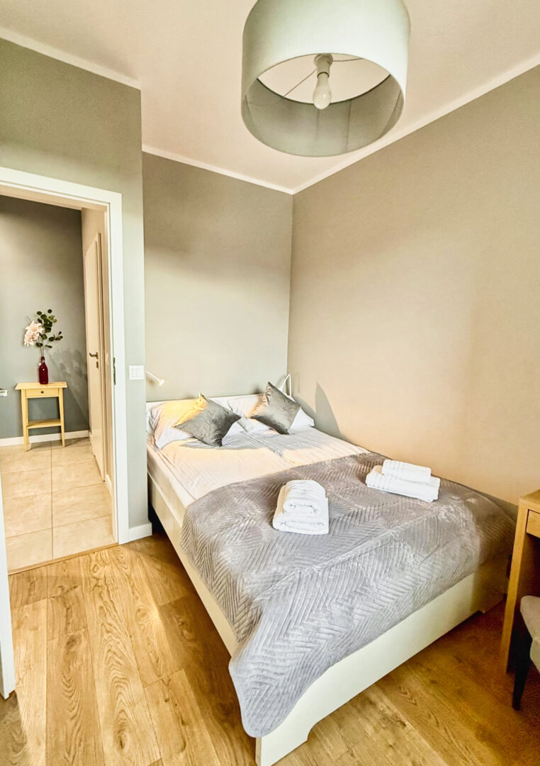 The University Apartment is a spacious private apartment in Toruń, on Bydgoskie Przedmieście Street, close to Nicolaus Copernicus University. Designed with groups and families in mind, it offers comfortable accommodations for up to 8 people, a clear division of day and night zones, and functional furnishings. Guests have access to a kitchenette, a lounge area, and a workspace, making it ideal for both leisure and business stays. The location combines the tranquility of a green neighborhood with good transport links to the city center and popular attractions. The standard of furnishings meets guests' everyday needs without any marketing or frills. Type and StandardThe University Apartment is a spacious private apartment in Toruń, on Bydgoskie Przedmieście Street, close to Nicolaus Copernicus University. Designed with groups and families in mind, it offers comfortable accommodations for up to 8 people, a clear division of day and night zones, and functional furnishings. Guests have access to a kitchenette, a lounge area, and a workspace, making it ideal for both leisure and business stays. The location combines the tranquility of a green neighborhood with good transport links to the city center and popular attractions. The standard of furnishings meets guests' everyday needs without any marketing or frills.