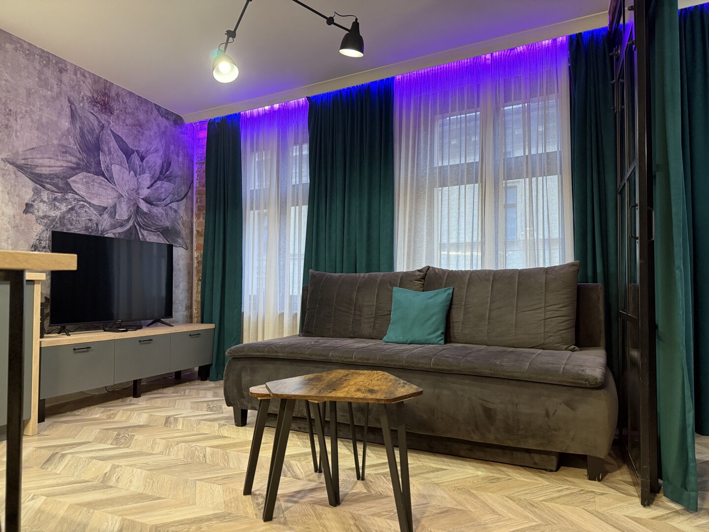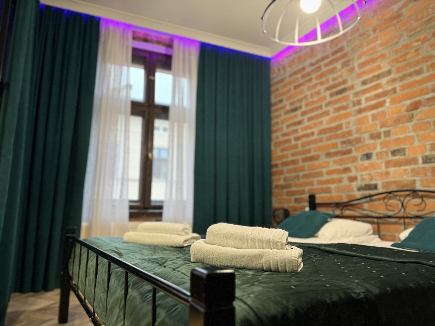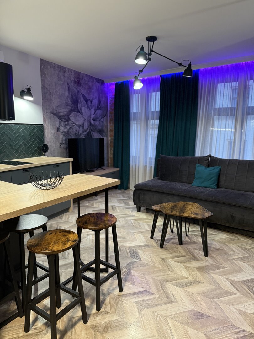 Green Loft by Rentoom is a self-contained loft apartment located in the heart of Toruń, within walking distance of the Old Town's main attractions, restaurants, and public transportation. Designed with individual guests, couples, and small groups of up to four in mind, the space offers a functional living space with an open-plan living area, a fully equipped kitchen, and a private bathroom. The apartment offers a standard of comfort – fast, free Wi-Fi, a TV, a kitchenette, and amenities for self-catering and relaxing. Its location near the Town Hall, the Copernicus Monument, and Philadelphia Boulevard allows for easy walking and access to city services. Pets are welcome upon request and the property provides a private entrance and basic amenities necessary for your stay. Type and Standard