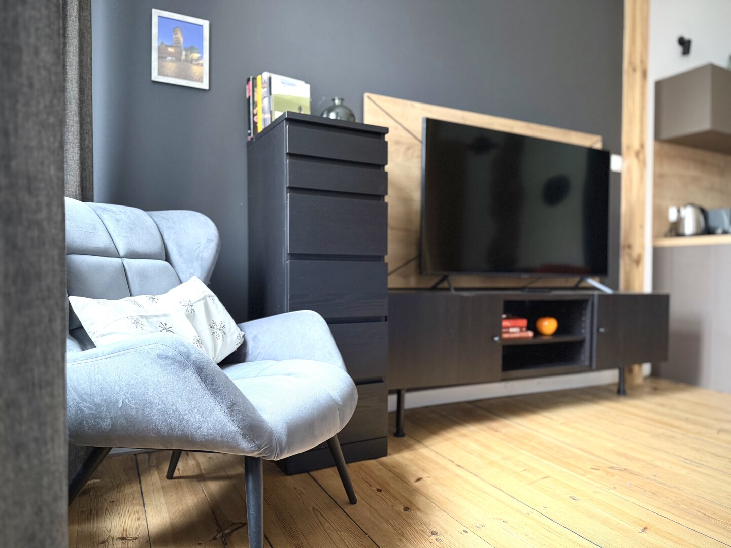 Ślusarska 5 by Rentoom is a self-contained, fully furnished city apartment located in the historic center of Toruń, near the Old Town and the city’s main tourist attractions. The property offers functional living space for up to 4 people, featuring a separate bedroom and a living area with a sofa bed, a kitchenette, and a bathroom with a shower, ensuring standard comfort for both leisure and business travelers. The apartment is designed for short- and medium-term stays—equipped with free Wi-Fi, a TV, basic kitchenware, and practical amenities. The location makes it easy to explore Toruń’s main attractions on foot, while on-site parking and transfer options simplify travel logistics. Standard amenities and a clear division of space minimize any uncertainty regarding the quality of your stay. Street parking is available via a parking meter in the city’s paid parking zone.