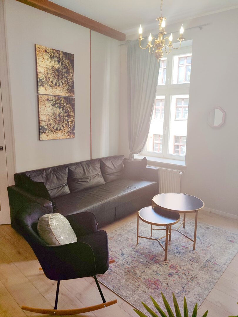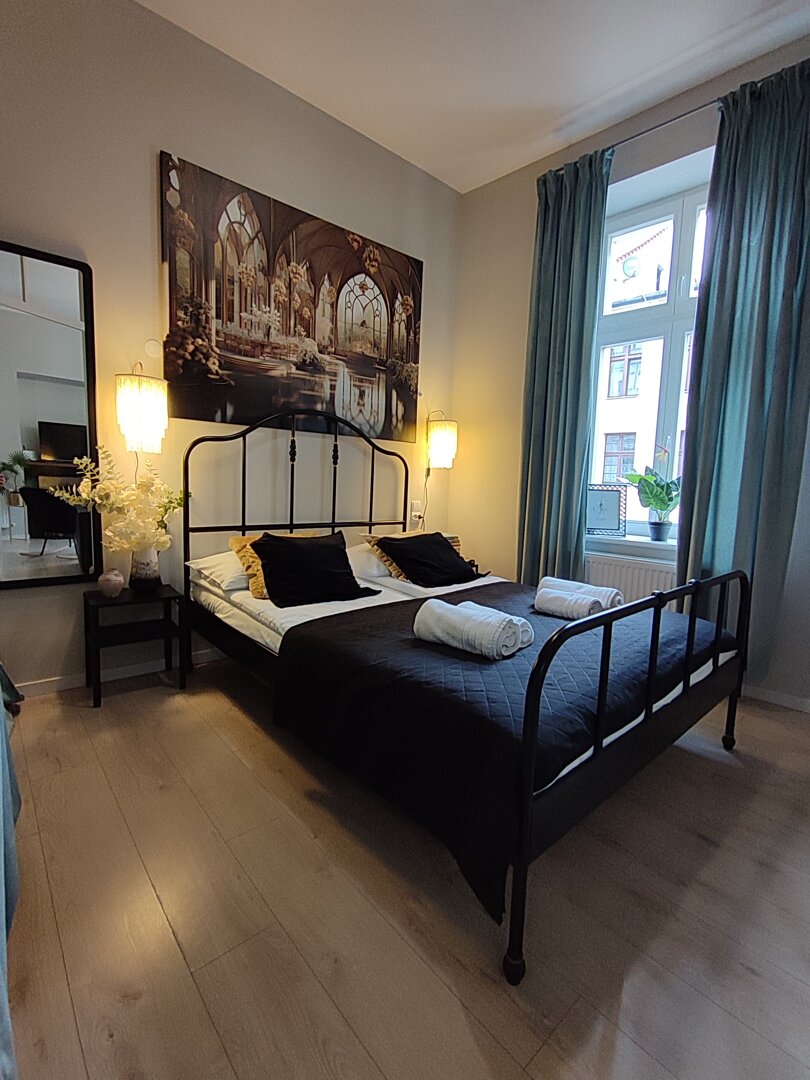 Perła Torunia is a modern suite with an area of approximately 40 m², located at 17 Prosta Street in the heart of Toruń's Old Town. Designed for up to four people, it features a functional layout and is fully equipped for short- and medium-term stays. The property is perfect for couples, families, and business travelers alike. The location allows for quick walking access to the Old Town Square, restaurants, and tourist attractions. Type and standard
