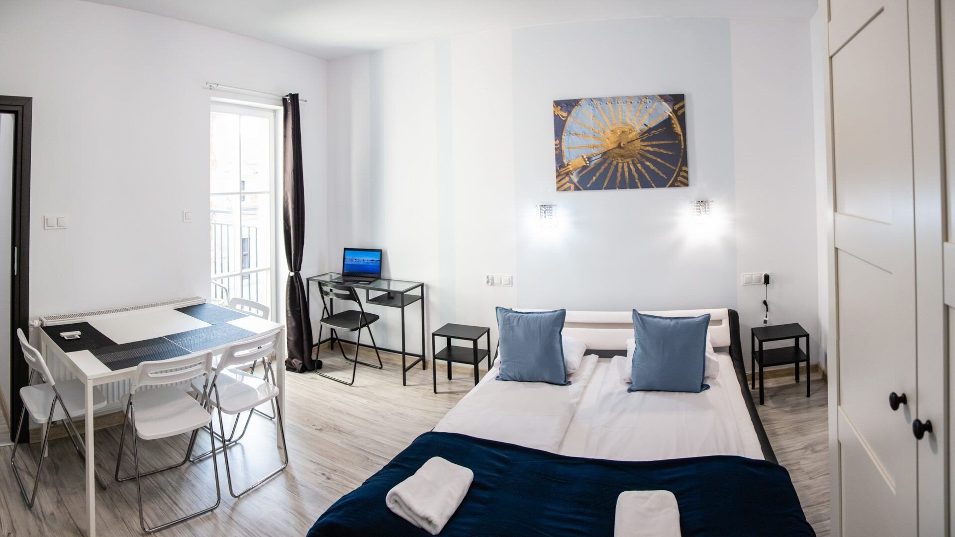 Wieża Janów by Rentoom is a functional, fully self-contained city apartment in the historic center of Toruń, close to the Old Town and the Vistula River. The property offers comfortable accommodation for up to four people, with a balcony and views of the historic skyline. The interior was designed with a focus on practicality and a predictable standard – an equipped kitchen, living area, and private bathroom allow for an independent stay, whether for leisure or business. The location is convenient for walking to key attractions, restaurants, and services. Guests have access to Wi-Fi and basic amenities for everyday living. Type and Standard