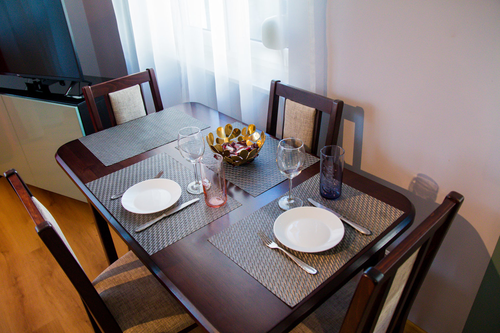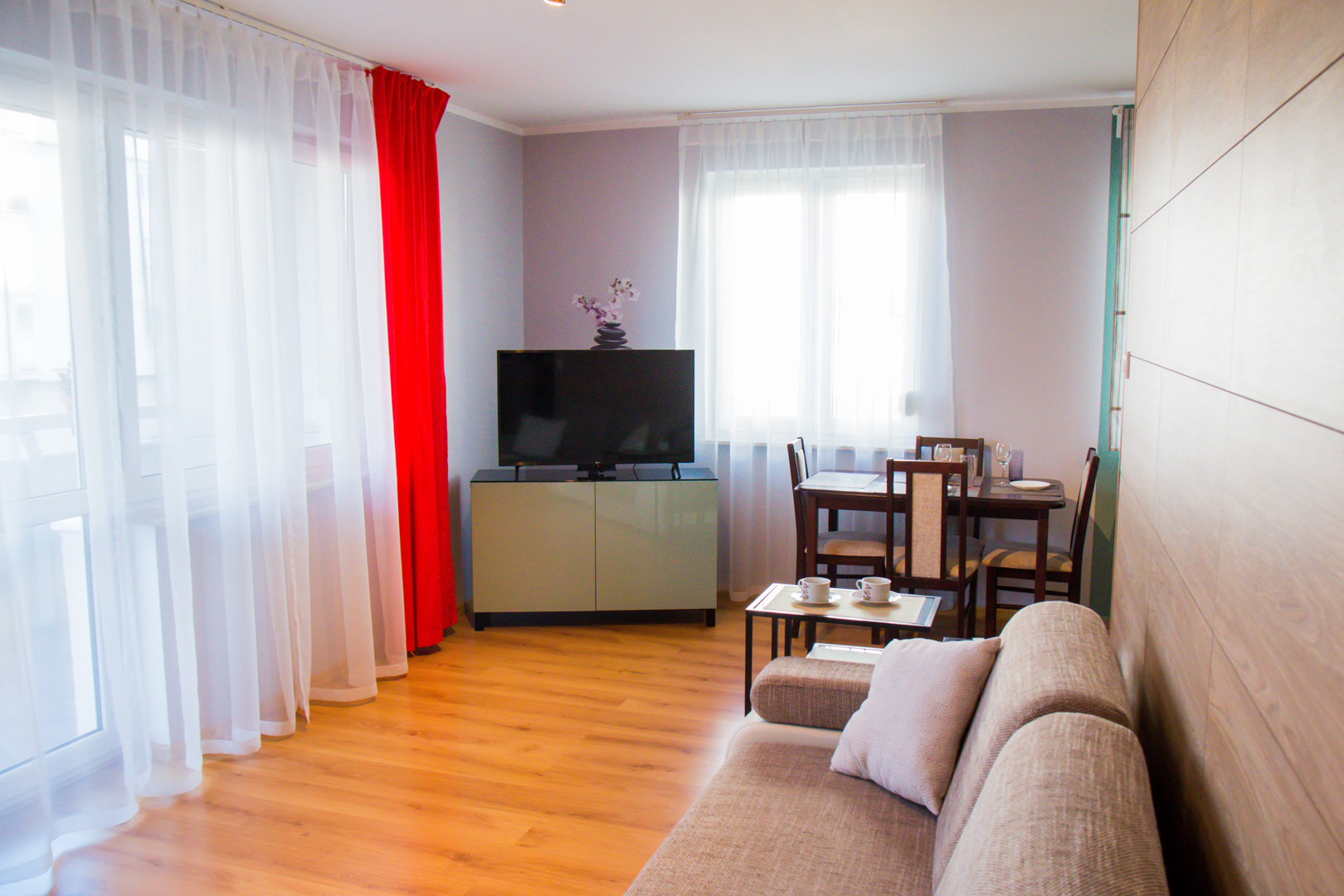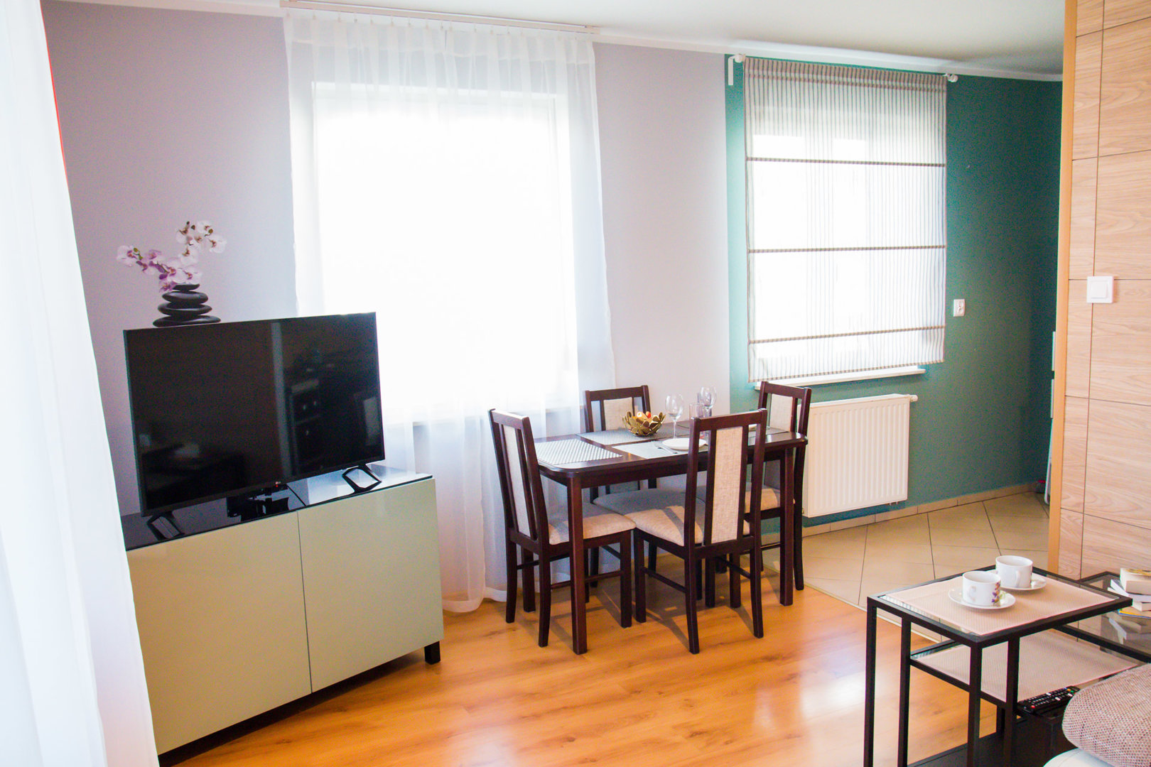 The Cozy Seven Apartment is a two-room apartment with an area of 48 m² located on Podchorążych Street in Toruń, near the Old Town and the Vistula Boulevard. The property is located in a gated and monitored community with free parking, providing convenient access to restaurants, cafes, and major tourist attractions. The space is suitable for family or business stays for up to 4 people, and is fully equipped with basic amenities. The apartment includes a kitchenette, bathroom, and seating area with TV and free Wi-Fi. The standard is unadorned, reflecting the actual furnishings and convenience for business or leisure travel.The Cozy Seven Apartment is a two-room apartment with an area of 48 m² located on Podchorążych Street in Toruń, near the Old Town and the Vistula Boulevard. The property is located in a gated and monitored community with free parking, providing convenient access to restaurants, cafes, and major tourist attractions. The space is suitable for family or business stays for up to 4 people, and is fully equipped with basic amenities. The apartment includes a kitchenette, bathroom, and seating area with TV and free Wi-Fi. The standard is unadorned, reflecting the actual furnishings and convenience for business or leisure travel.