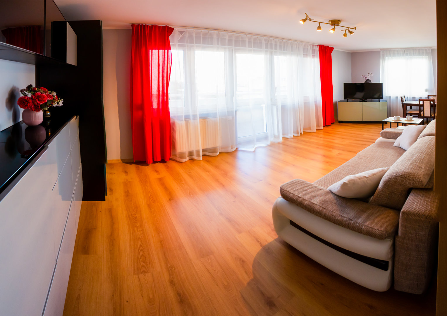 Type and Standard– 2-room apartment, 48 m²– max. Sleeps 4– Gated community, monitored area– Free on-site parking– Neutral, functional décorSpace and sleeping– 1 bedroom with a double bed/2 single beds– Living room with a sofa bed/lounge area– Bed linen and towels includedKitchen– Fully equipped kitchenette– Refrigerator, stove, microwave– Coffee maker, tea making facilitiesTechnology– Flat-screen TV/Smart TV– Free Wi-FiBathroom and amenities– Private bathroom with shower– Washing machine, iron, ironing board– Hairdryer, soapLocation– ul. Podchorążych 13d, Toruń– a short walk to Toruń's Old Town– grocery stores nearby– walking distance to the Vistula River boulevardTarget groups– families– individual guests– business stays– couples.