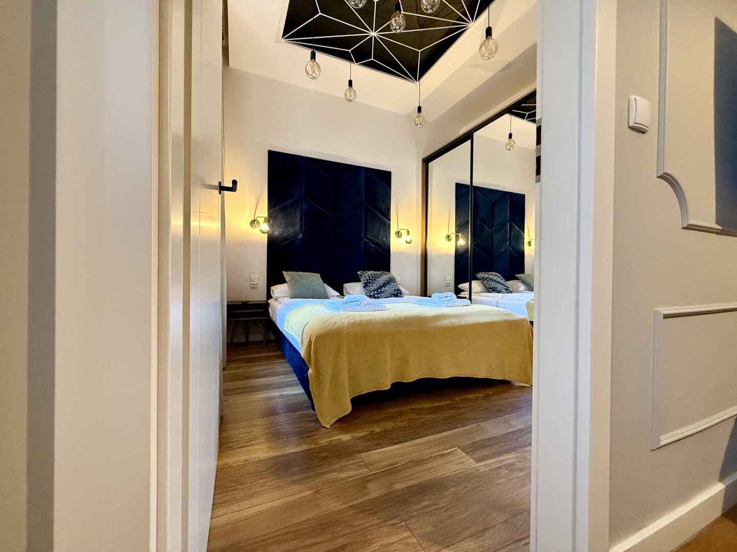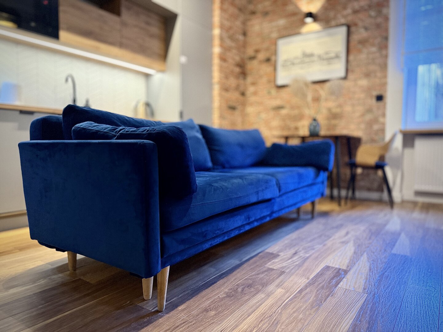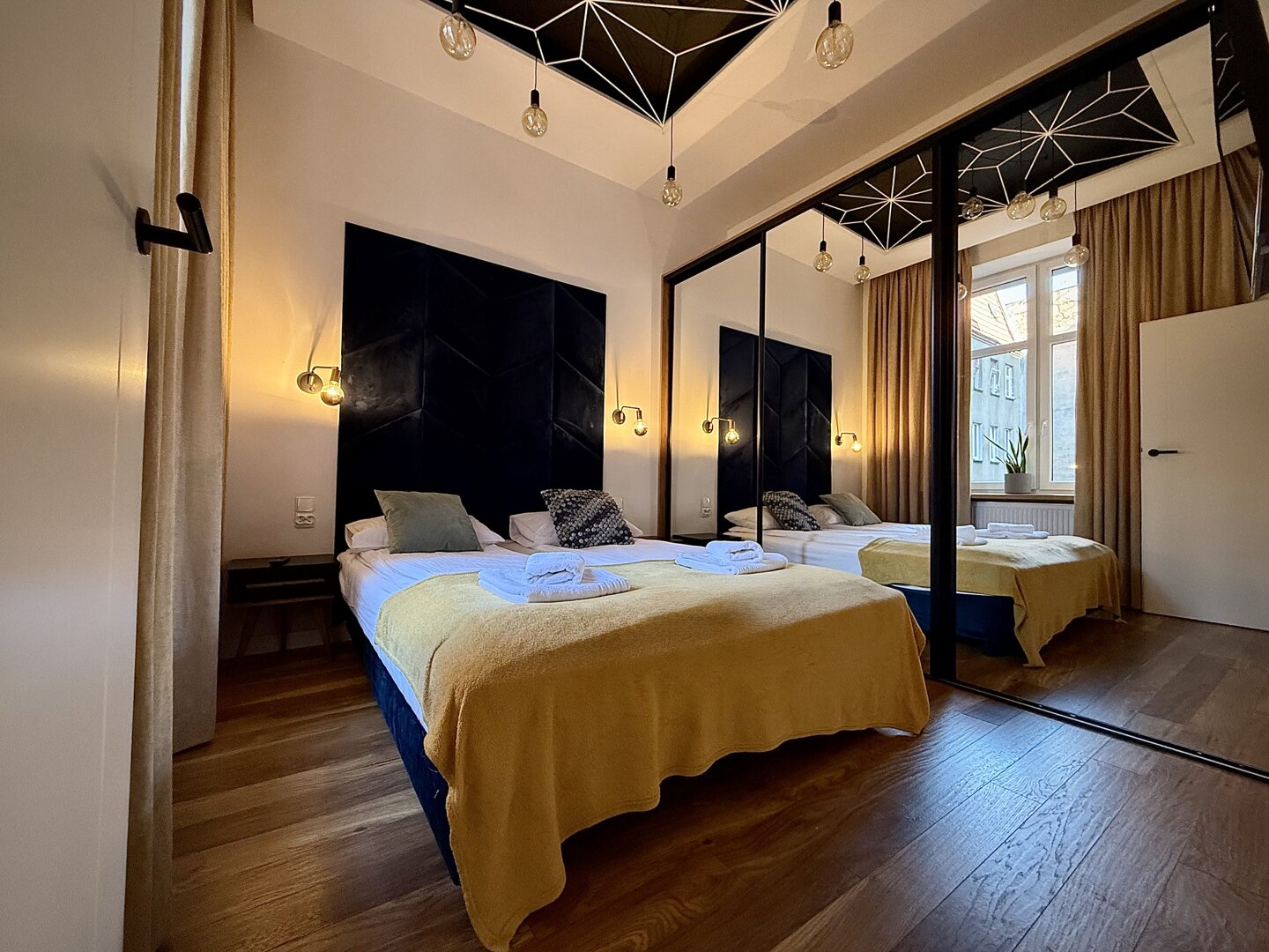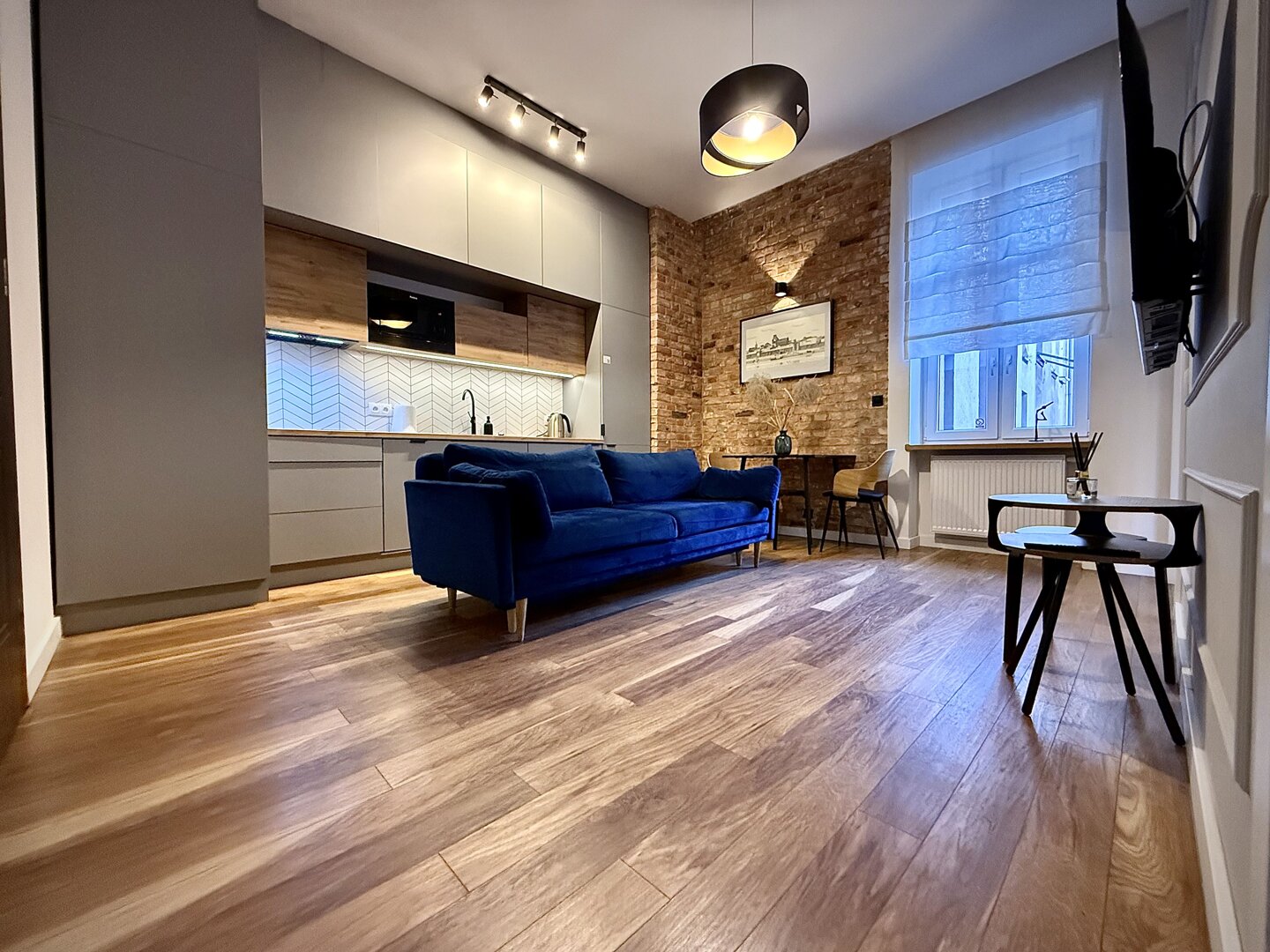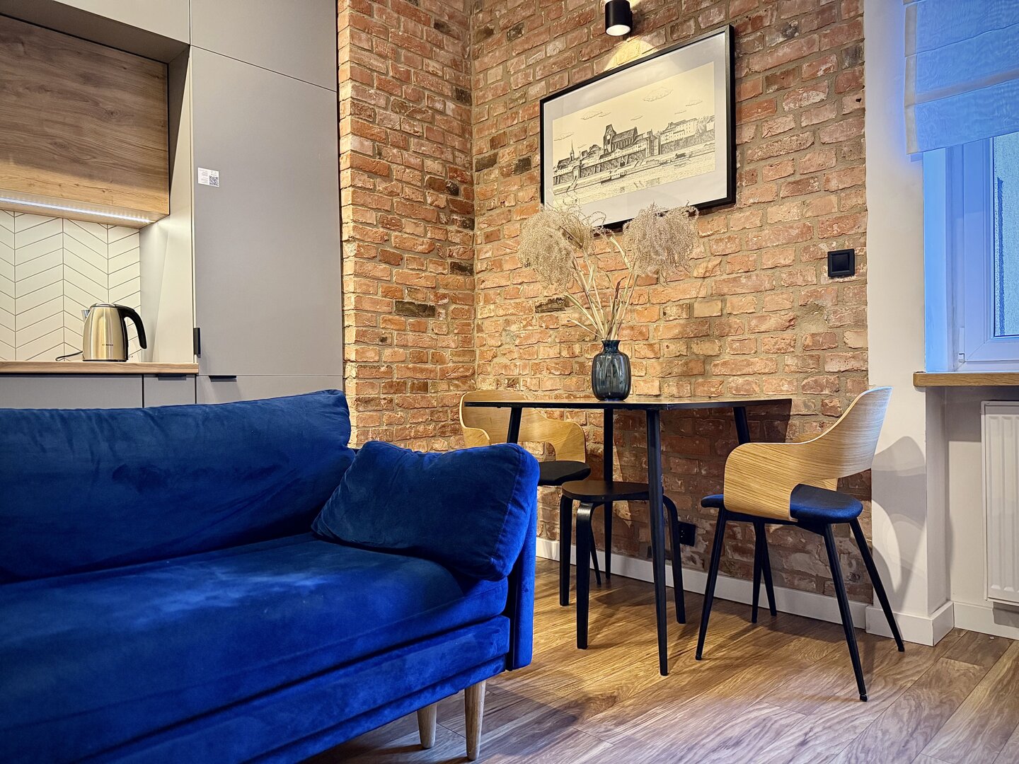 The Golden Room Apartment in Toruń is a fully equipped apartment with an area of approximately 48 m², located on the outskirts of the Old Town with easy access to major tourist attractions. The property offers comfortable space for up to four people, with a separate bedroom and living room, a fully equipped kitchen, and basic everyday appliances. The apartment offers free Wi-Fi, TV, and pet-friendly accommodation, making it a practical choice for solo travelers, couples, and business travelers. Its location allows for a peaceful stay while also providing quick access to the city center and the Vistula River. The standard of furnishings is suitable for long-term stays and tourist trips in a city rich in cultural offerings. Type and Standard