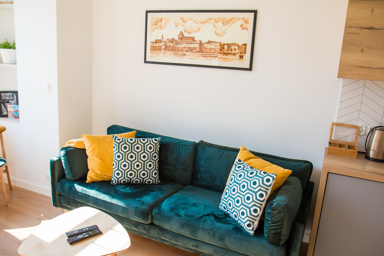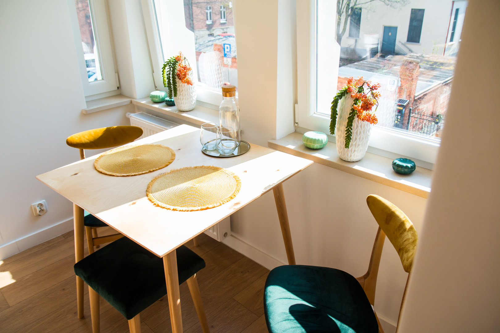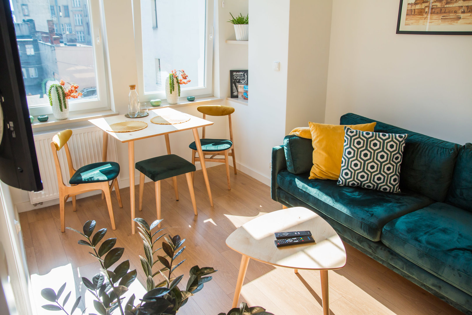 Emerald Room is a fully equipped apartment located at 6 Jagiellończyka Street on the outskirts of Toruń's Old Town, offering a comfortable stay for up to four people. The property combines functional living space with a kitchenette and separate sleeping areas, ensuring a predictable standard without excessive frills. Its location allows for convenient walking tours of Toruń's main attractions, while also providing access to a peaceful, green neighborhood. The apartment is suitable for solo guests, couples, and business travelers. Type and Standard