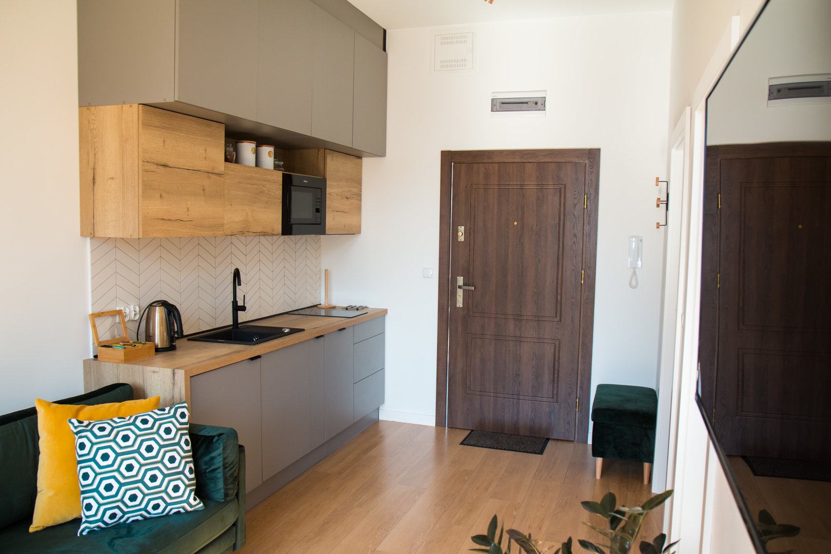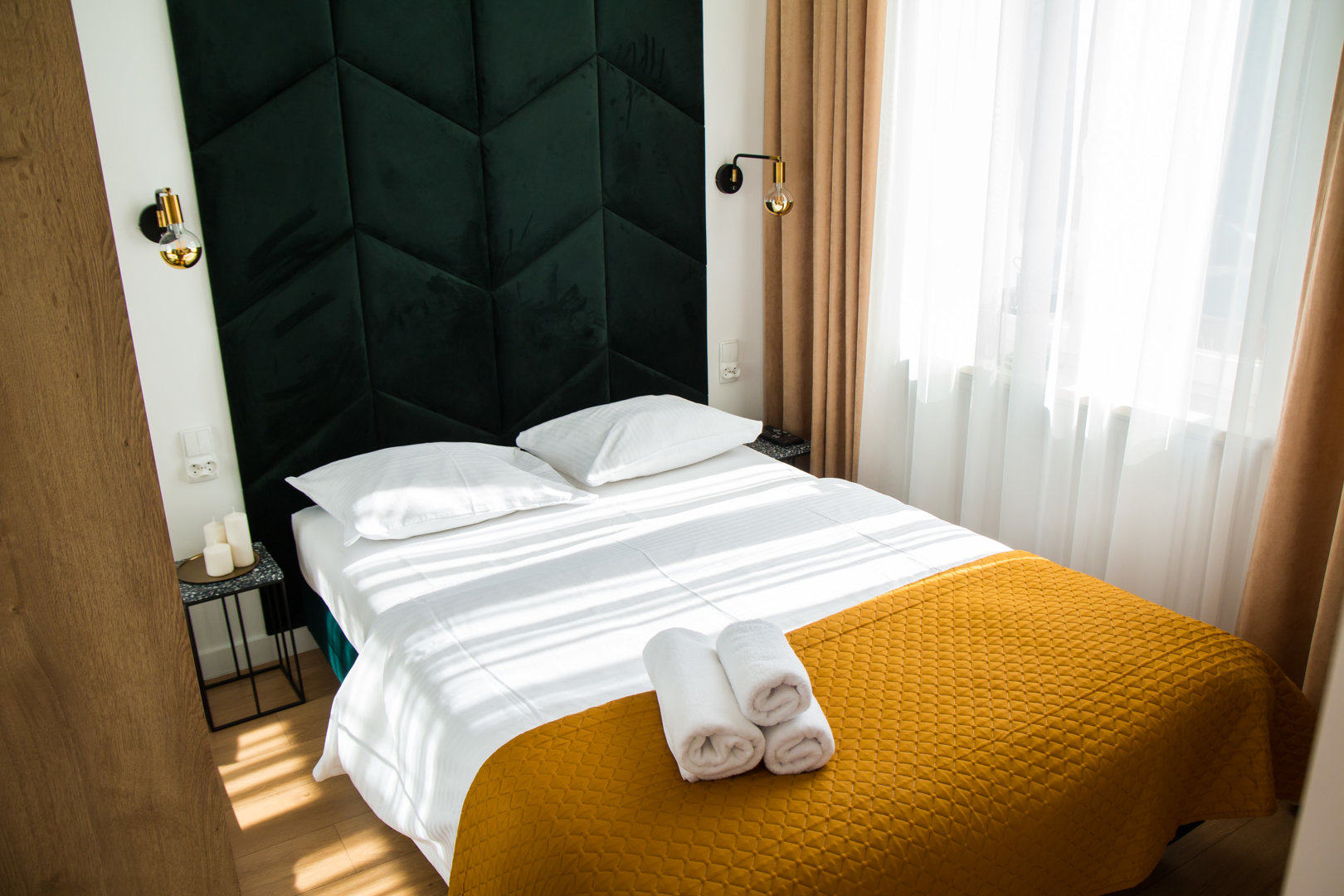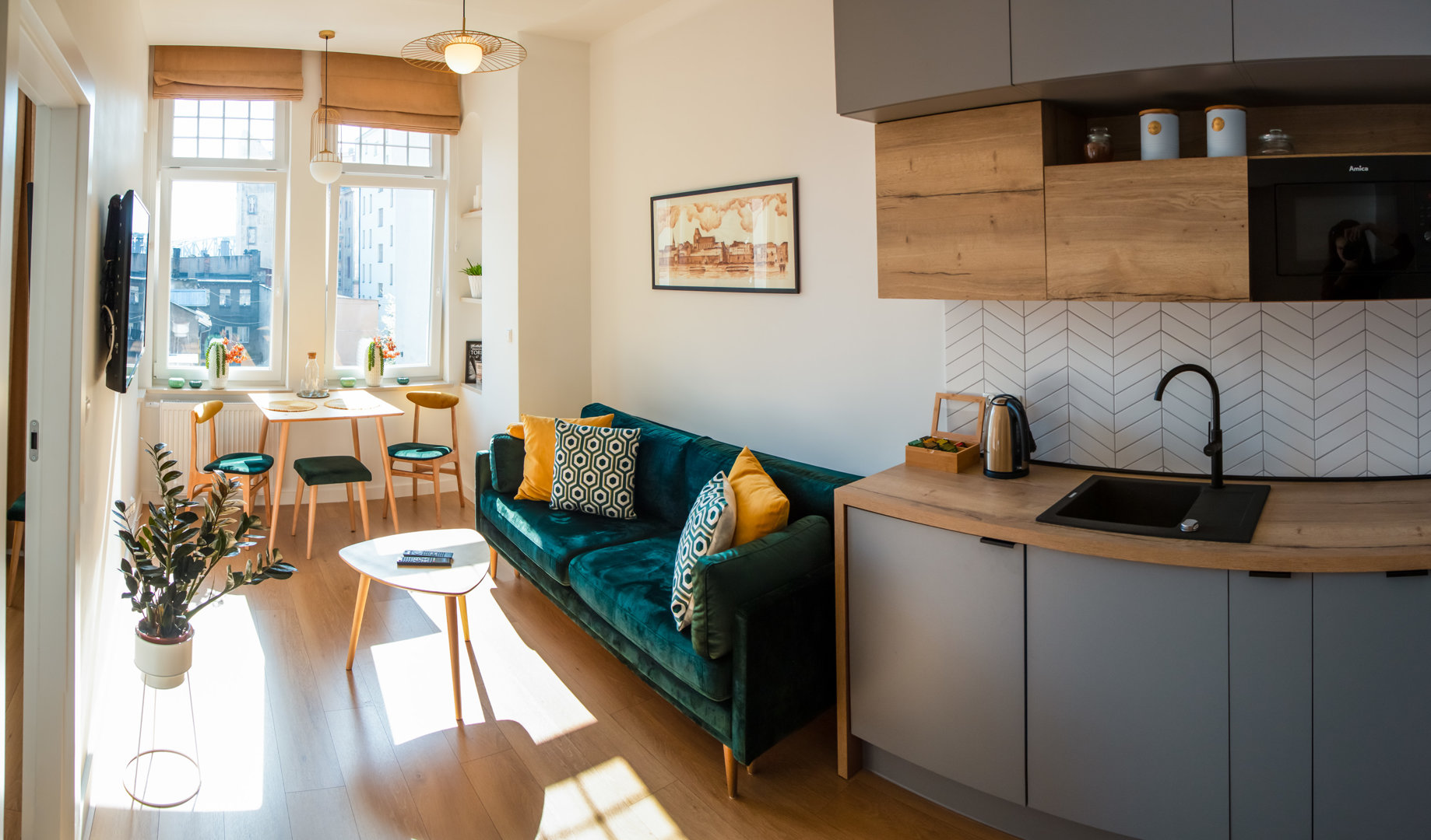Emerald Room is a fully equipped apartment located at 6 Jagiellończyka Street on the outskirts of Toruń's Old Town, offering a comfortable stay for up to four people. The property combines functional living space with a kitchenette and separate sleeping areas, ensuring a predictable standard without excessive frills. Its location allows for convenient walking tours of Toruń's main attractions, while also providing access to a peaceful, green neighborhood. The apartment is suitable for solo guests, couples, and business travelers. Type and Standard