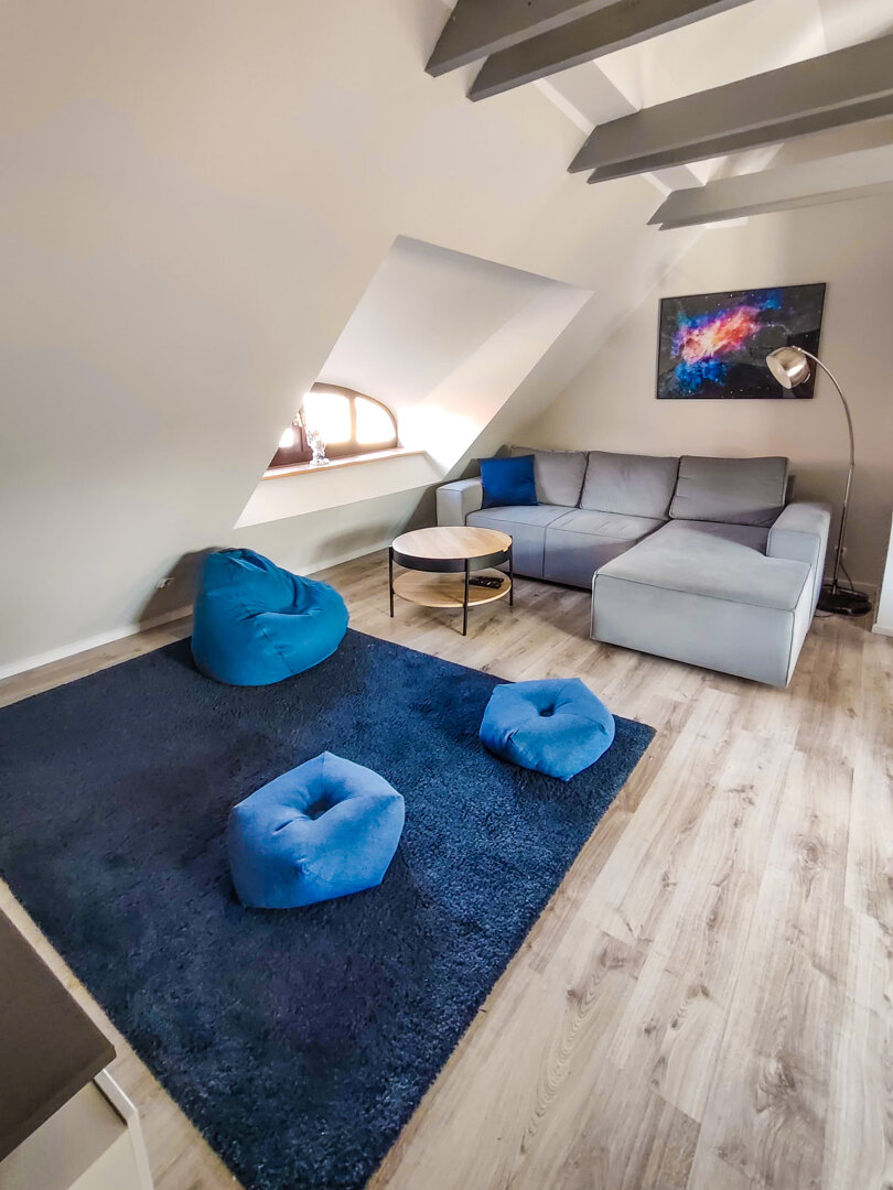 Astro Apartment is located in the heart of Toruń's Old Town, on the New Town Square. It sleeps up to four people with a private entrance and air conditioning. The layout includes a separate bedroom and a spacious living area with a relaxation area, designed for comfortable stays for both tourists and business travelers. The interior is equipped with a kitchenette, full bathroom facilities, and standard household appliances, ensuring a predictable standard of stay in the heart of the city. The location allows for walking access to major attractions, restaurants, and municipal institutions, without the need for public transport. This offer meets the needs of guests who value independence, comfort, and a central location. Checklist – Property Features