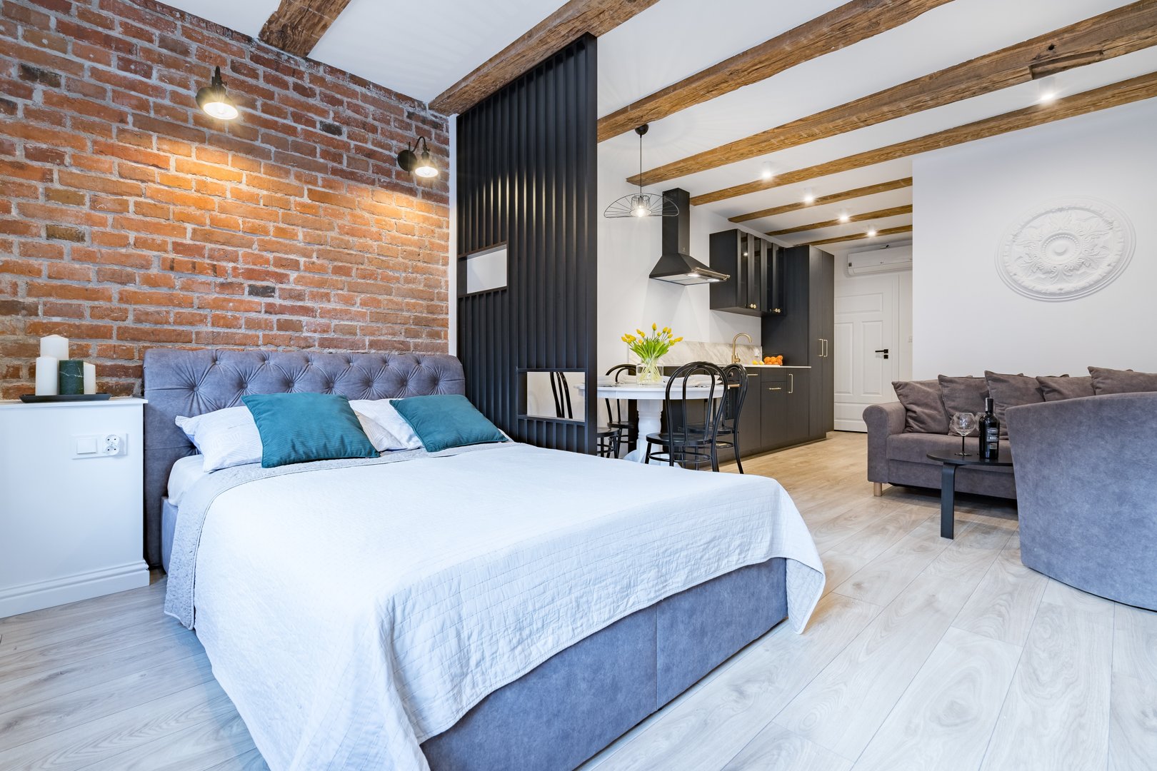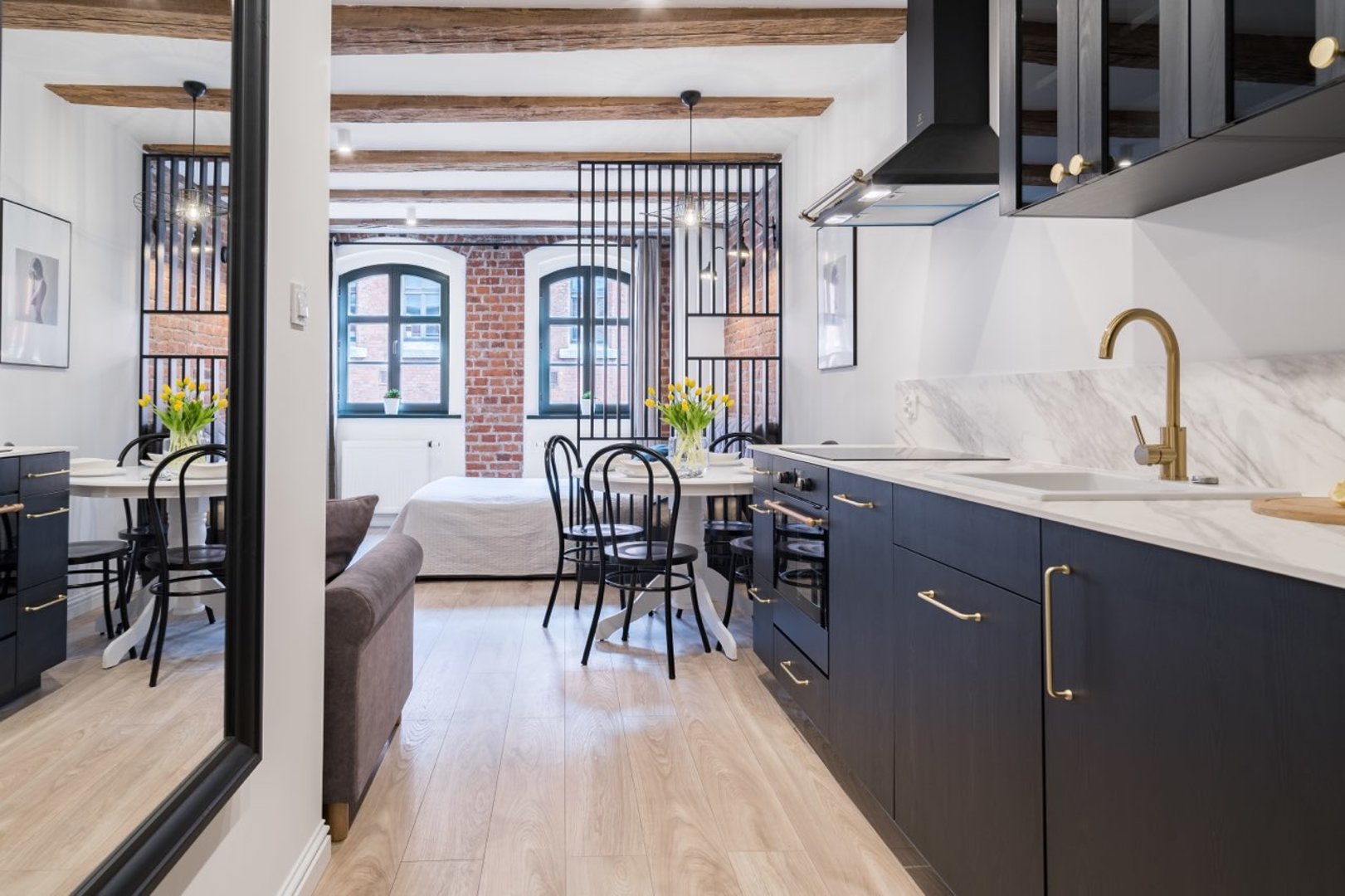 Miodowa Faktoria 7 by Rentoom is a modern, one-bedroom apartment in the center of Toruń, on Świętego Jakuba Street, a 2-6-minute walk from the New Town Square and the Old Town. Designed for a comfortable stay for up to 4 people, the property offers a predictable standard of furnishings and amenities typical of short city breaks. The apartment is ideal for couples, business travelers, and tourists seeking a functional base in the heart of the city. Guests have access to a self-contained space with a kitchenette, bathroom, and essential amenities, with no additional fees for basic services. The location allows easy access to Toruń's main attractions and urban infrastructure. Type and Standard
